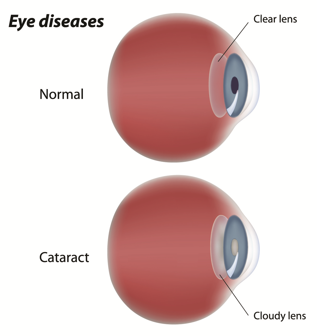 A cataract is a dense, cloudy area that forms in the lens of the eye. A cataract begins when proteins in the eye form clumps that prevent the lens from sending clear images to the retina. The retina works by converting the light that comes through the lens into signals. It sends the signals to the optic nerve, which carries them to the brain. It develops slowly and eventually interferes with your vision. You might end up with cataracts in both eyes, but they usually don’t form at the same time. Cataracts are common in older people. Over half of people in the United States have cataracts or have undergone cataract surgery by the time they’re 80 years old, according to the National Eye Institute.